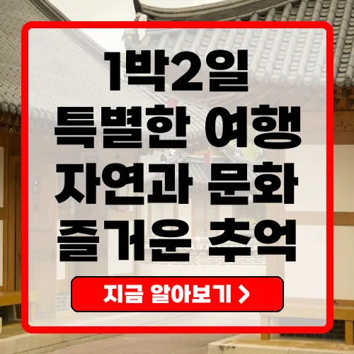 이처럼 다양한 자연을 대표하는 여행지에서 1박 2일의 특별한 순간을 만들어보세요. 자연 속에서의 휴식을 통해 다시 한번 에너지를 충전할 수 있는 기회를 잡아보시기 바랍니다. 더 많은 여행 영감을 원하신다면 아래의 추천 코스도 함께 확인해 보세요!
